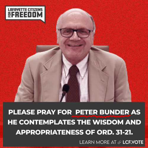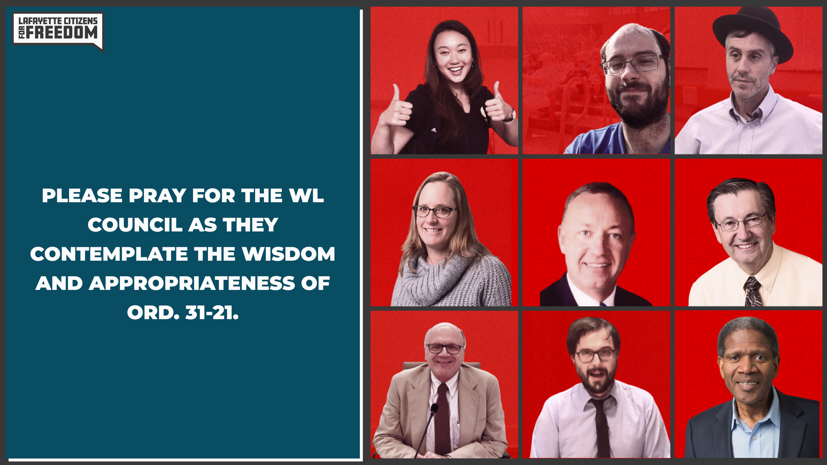 The West Lafayette City Council is considering Ordinance 31-21, which could punish unlicensed faith-based counselors simply for teaching minors principles from God’s Word about human sexuality. While Christians should respond to this proposal in a variety of ways, one of our first actions should be to pray for our city councilors along with all the elected officials the Lord has placed in positions of leadership. The Apostle Paul writes to Timothy to give instructions and urge the church to pray for all kinds of people.